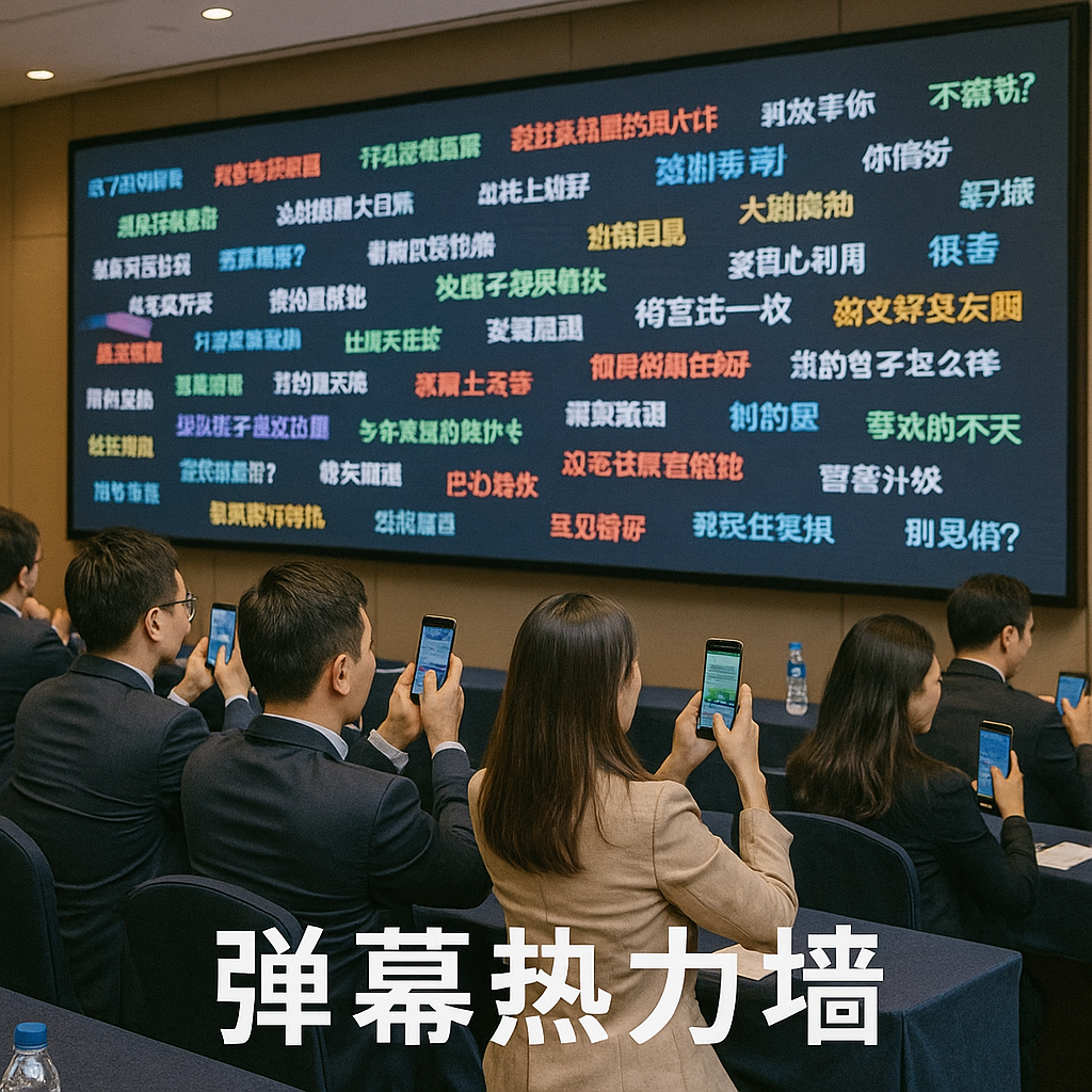 - 玩法:观众手机发送弹幕,速度/点赞量自动映射热度色块。
